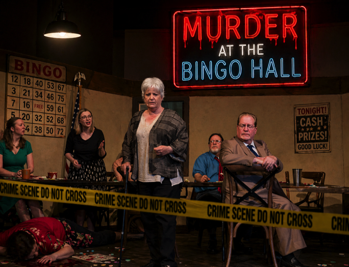 Your actors and audience will happily play to win the game of murder at the bingo hall.